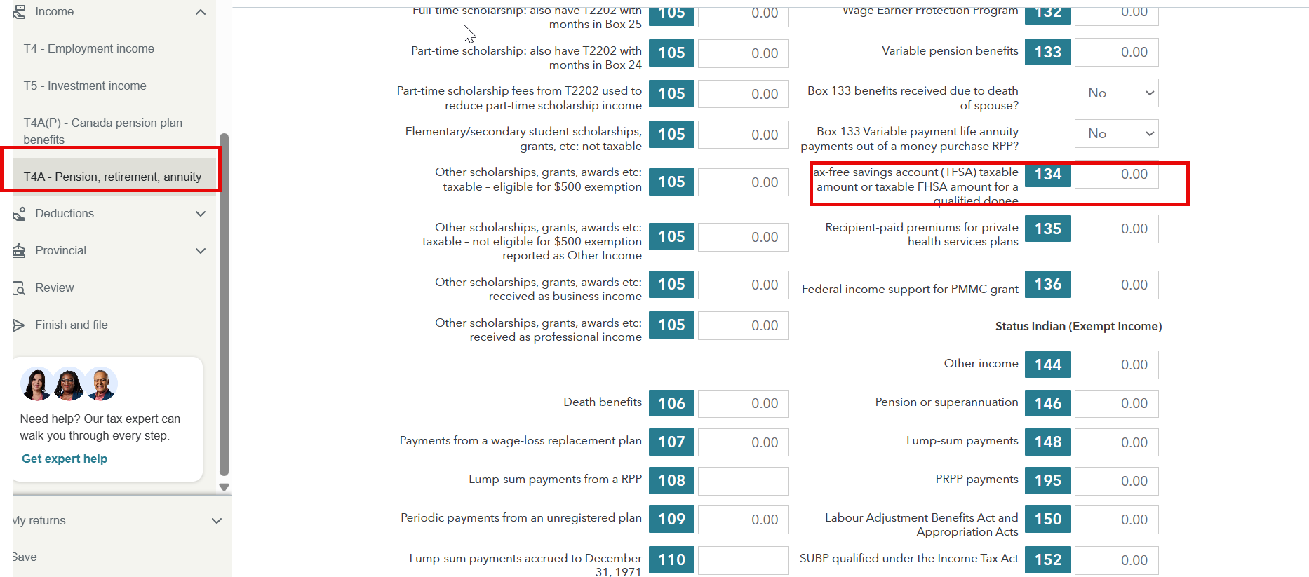 Since Box 134 represents a Tax-Free Savings Account (TFSA) taxable amount (or a First Home Savings Account payment to a qualified donee), you need to report it as "Other Information."