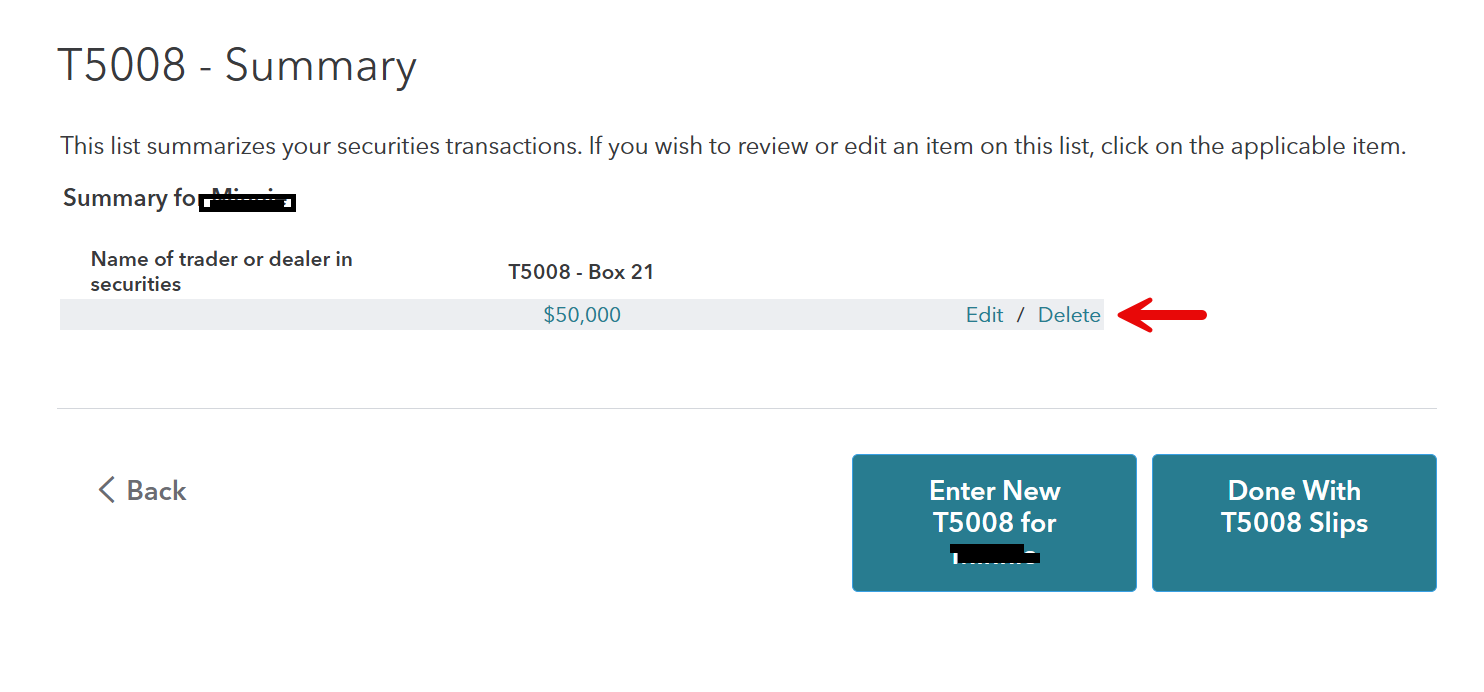 Thank you for the reply. I am using the online version. I have more than 570 slips. reentering it manually is impossible. I used the connect to CRA and download the T5008 Slips as is from CRA account as reported by the broker. Also I manually checked all the files twice. Is there a way to delete the slips and reenter it from the CRA account?