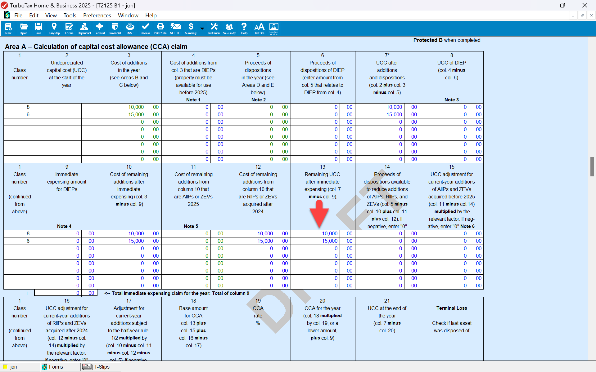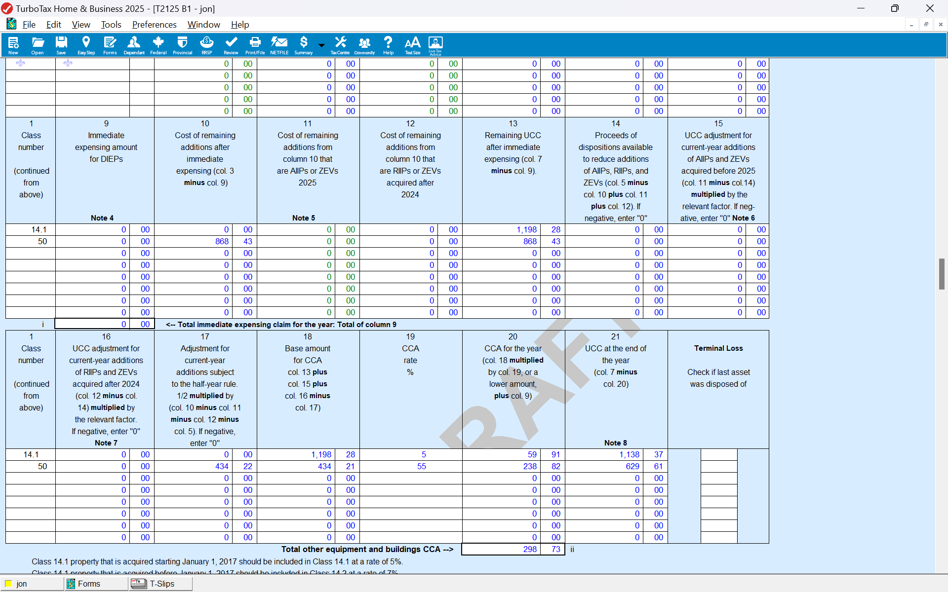 Also do you really think I am making up screenshots? You can see what the software turbotax 2025 installed on my computer is producing. Once it has 0.00 in Column 13, producing no CCA, when there is CCA.