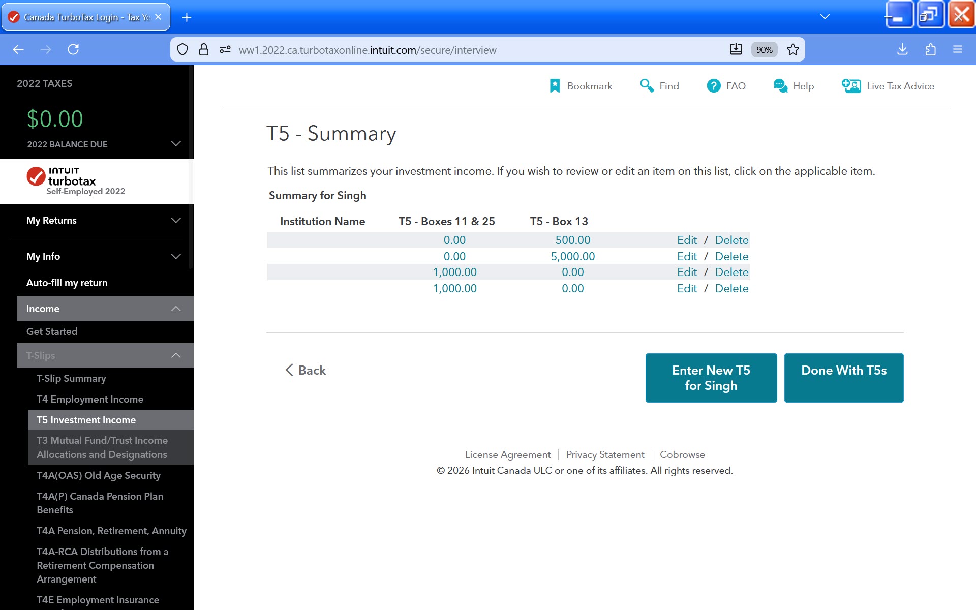 Like, if you look at the T5 Investment Income entry page, it doesn't even provide a total on that entry page either? I have 21 T5 entries for 2025. Where can I see the total, like I could since I started using TurboTax Online over a decade ago? Thanks.