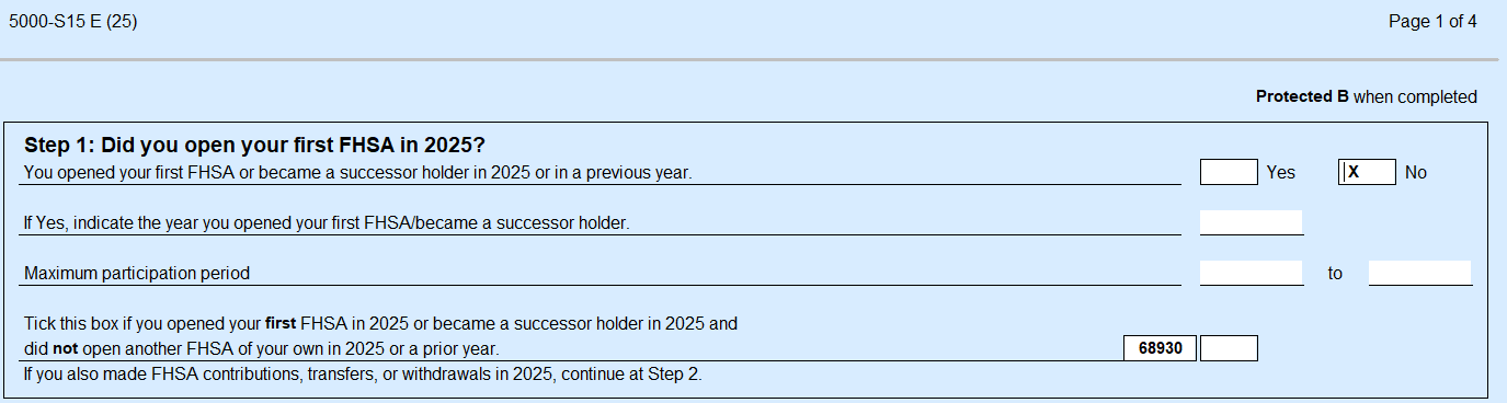 So far as we can tell, all the information has been entered correctly and matches his 2025 FHSA Participation Room Statement that we downloaded from CRA today.